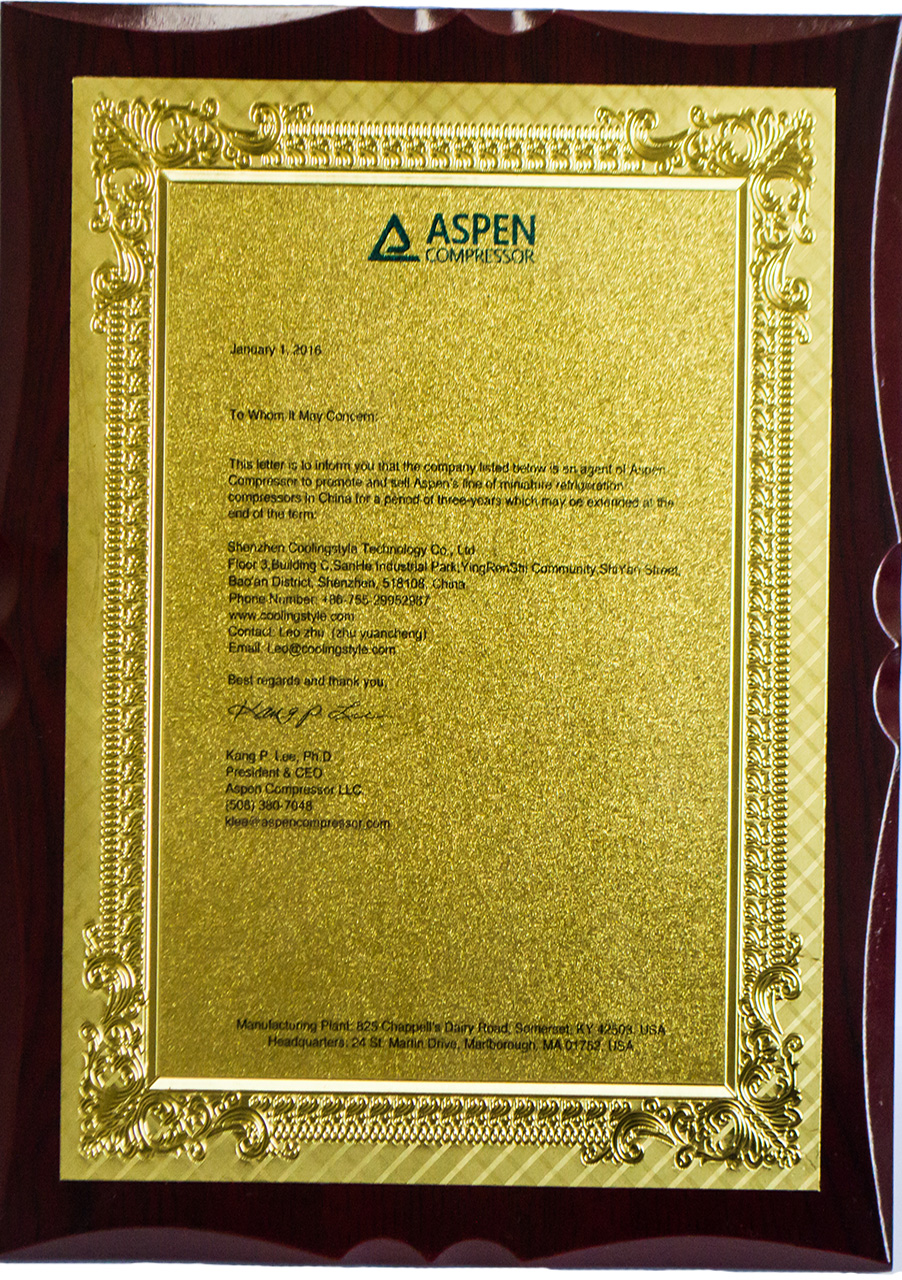 ASPEN壓縮機授權(quán)書